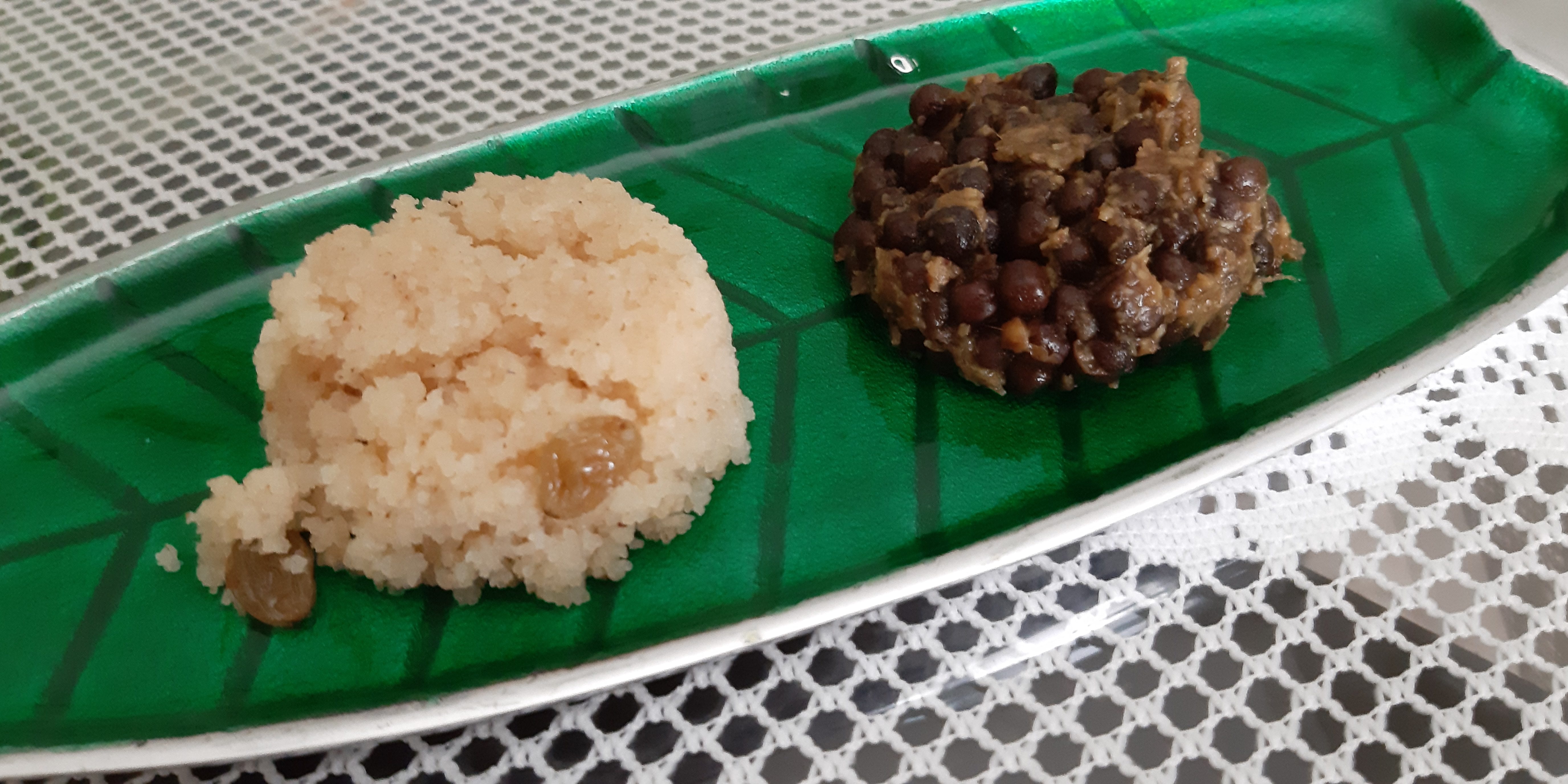 Now a days we come across many combos. We like to pair certain dishes .When we order food from hotels, they also offer many combos. But the oldest combo I know is ‘Kalya Watanyachi Usal ‘and ‘Shira’ distributed as Prasad after Satyanarayan Pooja.This was a regular practice in Sindhudurg District. After Pooja everybody got one ‘dron’ (leaf cup) full of shira and one ‘dron’ of watanyachi usal.One sweet and other spicy, both complimented each other. Shira was silky on the palate, redolent with ghee, sugar, cardamom and hint of ‘Sonyali’ (velchi) bananas. To cut the sweetness you take a spoonful of Usal. The Usal flavours just burst in your mouth and you are ready for next morsel of Shira. It was a celebration of flavours.